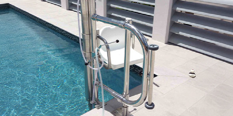 The lift is mounted at a single point outside the pool, with no need for submerged anchors or masonry work.